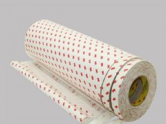 規格為:1219MM*55M*0.15MMT,具有耐久性,耐溫性好,短期耐溫性150℃,長期耐溫性120℃;防水性,回彈性好,初粘性和持粘性好,尺寸穩定性好,離型紙為白色離型紙,帶紅色“3M”LOGO;易模切加工,對塑膠、橡膠、銘牌均有良好的粘性