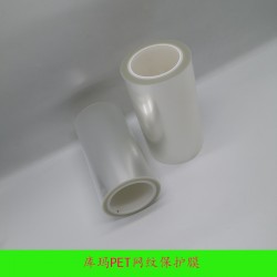 庫瑪PET保護膜采用進口材料制成,將聚酯薄膜作為基材,在原料單面通過涂布機涂布丙烯酸脂類粘劑再收卷而形成。在PET網紋保護膜表面有整齊排列的網紋分布,保護膜的厚度由30um~130um不等。粘度分為超低粘、低粘、中粘、中高粘和高粘,根據貼合材料不同來選擇PET網紋保護膜的厚度和粘度。