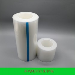 PE網紋保護膜以聚乙烯網狀塑料薄膜為基材,以交聯型聚丙烯酸樹脂為膠粘劑,再添加幾種特殊助劑,配制調試而成。厚度0.05,粘性有微粘、低粘、中粘、高粘。有普通和防靜電兩種,顏色為透明,不同材料表面的保護可選擇不同的產品型號粘力和規格。