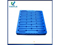 國內已經研發成功高剛度的吹塑托盤,采用常規的川字型結構,可以在高架庫房,高層貨架,各種生產線上使用,其托盤內部不需要設置任何其他的鋼管,動載達到2t以上,靜載達到6t以上,貨架架空載荷可以達到1.5t,使用場地的環境溫度可以在-40°~40°C條件下穩定工作,使用壽命可以達到8~10年。