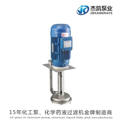 東莞立式泵 杰凱防爆立式泵公司能用于大部分的化學藥液,耐酸耐堿。適合各種酸堿液循環、冷卻、噴洗設備,廢氣塔、化學鍍、無電解鎳等特殊場合。使用用槽外立式泵不一樣的流道設計,能做到耐用,安全,高效,環保,易保養等功效。采用優質的TI與SUS螺絲供客戶選擇,其耐腐蝕性強,以滿足客戶不同工作環境使用。設有特質干式軸封設計;可保護電機空轉不受損害,防止腐蝕性氣體進入軸承而導致損壞;可提高電機的使用壽命。