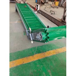 2、皮帶輸送機結構形式多樣,有槽型皮帶機、平型皮帶機、爬坡皮帶機、側傾皮帶機、轉彎皮帶機等多種形式,輸送帶上還可增設推板、側擋板、裙邊等附件、能滿足各種工藝要求。