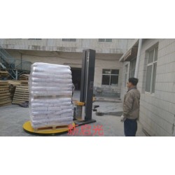 2.半自動型;人工加機器控制裹膜過程。包裝速度較低。卷輥滑架速度、轉盤/旋臂轉速、卷繞為大小可隨時調整。可預先設定薄膜裹膜的重疊量、翻邊量、纏繞層數等形成程序對貨物進行自動裹膜,并可根據貨物高度變化調節裹膜高度。