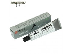 景固KINGKOU K-7008透明塑料粘合劑系復合型樹脂膠水,主要針對不同塑料的透明粘接以及其它材質(zhì)的有透明要求的粘接。該膠水常溫固化,使用方便,可機器涂膠、噴膠以及人工施膠,可作粘接固定、防水密封、表面披覆等基本用途,膠水完全固化后呈透明軟質(zhì)狀態(tài),防水、耐高溫、耐腐蝕、低氣味、通過歐盟ROHS環(huán)保認證。