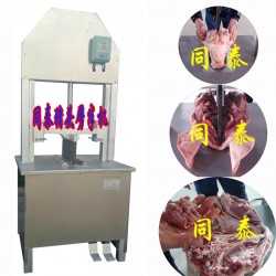 豬頭劈半機(jī)是利用液壓原理制作,能把豬頭、牛頭等放入不銹鋼夾內(nèi),操縱開關(guān),用上下滑動的刀把頭一劈兩半,效率高、安全、衛(wèi)生,是取代人工傳統(tǒng)操作的新型實(shí)用產(chǎn)品。劈半機(jī)可分為留腦劈半機(jī)和不留腦劈半機(jī),留腦劈半機(jī)可以把豬腦、羊腦、牛腦完整的保存下來