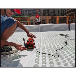 二、排水功能,節約建筑空間 凹凸排水板的多凸點結構設計可*證積水的多向流動,具有排水功能,板材設計高度多樣,從8mm ~ 40mm,可根據地區與施工要求進行不同選擇,排水空間可達70%,可節約建筑空間。