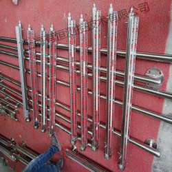 磁性翻板液位計(jì)概述:上海有恒UHZ-C系列磁翻板液位計(jì)適用于開(kāi)放或壓力容器內(nèi)的液位測(cè)量。基于它的特殊設(shè)計(jì),這種儀表特別適用于在有浸蝕性的、有害的或易燃性介質(zhì)和惡劣的環(huán)境下使用。UHZ型磁翻板液位計(jì)是以磁浮子為感測(cè)元件,并通過(guò)磁性浮子與顯示色柱中磁性體的磁耦合作用,反映被測(cè)液位或界面的測(cè)量?jī)x表。現(xiàn)場(chǎng)液位指示不需要電源。這種儀表還可選擇性地同時(shí)或分別安裝電遠(yuǎn)傳系統(tǒng)和限位開(kāi)關(guān)。應(yīng)用連通管原理,*證被測(cè)容器與測(cè)量管體間的液位相等。