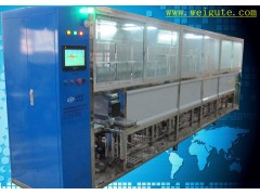 每槽設四面溢流口,溢流槽寬35mm,各槽均為***循環(huán)槽,由循環(huán)泵將洗劑由儲液箱抽出經過濾后再運回清洗槽,即子母槽循環(huán);