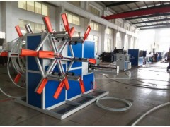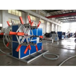 生產線主要包括:單螺桿擠出機、管材模具、真空定徑水箱、噴淋冷卻水箱、牽引機、切割機和 翻轉臺。