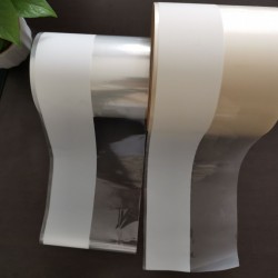 產(chǎn)品外觀半面無色透明,半面印有白色底色,均勻一致,安全無毒性,熱合溫度低,達(dá)到80℃-85℃,