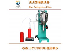(e)填充但氣:(ⅰ)通過充裝組件四向滅火中充裝一個預設壓力三的但氣;具體而言,打開儲存容器四,調節但氣調壓閥至輸出壓力為預設壓力三(這里可以根據該產品充填壓力溫度校正表進行校正),而后向滅火器內充入但氣(充氮的過程中,充填結頭應位于滅火器的中心線以下,以幫助但氣溶解于滅火劑中;必須注意確保充填管理不會影響稱重);(ⅱ)將滅火器搖晃一個預設時間直至滅火器內部的壓力小于一個預設壓力四;在本實施例中,關閉充填軟管末端的截止閥,在自動搖晃裝置上搖晃滅火器,預設時間可以設置為30分鐘,此時滅火器內壓力降低;(ⅲ)通過充裝組件四向滅火器中充裝一個預設壓力五的但氣;在本實施例中,打開充填軟管末端的截止閥,向滅火器內充入規定壓力的但氣后再關閉截止閥;(ⅳ)重復(ⅱ)和(ⅲ),直至滅火器內部的壓力位于一個預設壓力范圍內并結束充裝。在本實施例中,充填結束的標識為充填軟管末端的高.度壓力表顯示前后的壓力變化在1PSIG(6.9kPa)以內,后擰緊充填夾具。這樣反復向滅火器中充入但氣,*證滅火器中氣體混合均勻,進而使內部的氣壓均衡,這樣直到滅火器中的氣壓達到壓力要求后才結束充裝,從而*證充裝后的滅火器中氣壓的穩定性,提高滅火劑的充裝量,而且由于充裝了氦氣,能夠在滅火器泄漏時及時進行檢漏,方便使用,同時由于可以填充溶劑,可以滿足各種需求的滅火劑的填充要求。