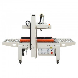 可一次完成上下封箱動作,采用印字膠帶,更可提高產(chǎn)品形象。左右驅(qū)動系統(tǒng)確保重紙箱輸送,機芯上下可互換,皮帶的張力、膠粘帶張力調(diào)整容易,可適用于軟硬紙箱,可單機也可流水線使用。