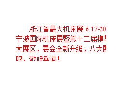 浙江省*大機(jī)床展6.17-20震撼來襲!金諾機(jī)床展與寧波市模具行業(yè)協(xié)會(huì)聯(lián)手打造2016寧波國際機(jī)床展暨第十二屆模具之都博覽會(huì)!設(shè)置機(jī)床、工模具、智能制造、工業(yè)機(jī)器人四大展區(qū),展會(huì)全新升級(jí),八大展館全面開放,將亮點(diǎn)展出智能化、柔性化智能裝備,商機(jī)無限,敬候垂詢!