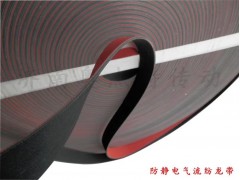 橡膠片基材質龍帶特點,接頭工藝搭接,上車使用需按箭頭方向安裝使用, 我公司研發進口材質龍帶被客戶反饋良好,近三年新研發生產的一款防靜電系數高,此款龍帶添加防靜電炭粉,防靜電系數達標(10的8次方),上機運轉平穩