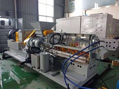 銘嘉達生產遇火膨脹密封片擠出機,三元乙丙橡膠擠出機(圖組)一種防火膨脹密封條,屬于門、窗密封技術領域,具體涉及防火門或防盜門的密封條;是在阻燃膨脹層的上面和阻燃膨脹層的兩個側面覆蓋有阻燃裝飾層;所述的阻燃裝飾層的上扁面連接有一與阻燃裝飾層相同材質的弧狀空腔結構。上述結構的優點是可以利用共擠出工藝生產出連續長度的防火密封條,不僅提高了生產效率,同時也提高了產品的質量。本實用新型具有裝飾性能好,使用時裝飾層不出現翹邊現象,適于生產連續長度的積極效果。工藝:密煉,自動提升機,錐雙喂料機,單螺桿擠出機,自動換網,片材擠出模具,三輥壓光,托架冷卻,在線切割,輸送帶。全部自動化,流水作業。物料密煉后能強制進入單螺桿,螺桿全稱分散,無過分摩擦熱。單螺桿造粒機分散效果優異,主機電流小,節能環保。