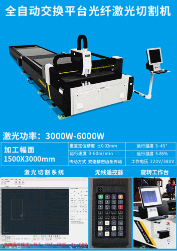 專業(yè)激光切割機(jī)*牌,全自動(dòng)交換平臺(tái),設(shè)備可邊加工邊上下料,上料10s,光纖激光,切縫更小,