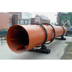 3、烘干機圓筒是一個與水平線略成傾斜的旋轉圓筒。物料從較高一端加入,載熱體由低端進入,與物料成逆流接觸,也有載熱體和物料一起并流進入筒體的。