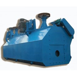 浮選機由電動機三角帶傳動帶動葉輪旋轉,產生離心作用形成負壓,一方面吸入充足的空氣與礦漿混合,一方面攪拌礦漿與藥物混合,同時細化泡沫,使礦物粘合泡沫之上,浮到礦漿面再形成礦化泡沫。調節閘板高度,控制液面,使有用泡沫被刮板刮出。