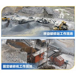 現場作業時,固定碎石機每臺設備都要打樁,對環境要求較高,比較難移動;而移動碎石機,車載一體,隨用隨走,比較方便,適合需要經常轉移物料的砂石廠。