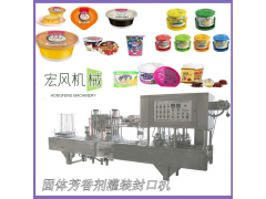 溫州宏風機械生產的全自動灌裝封口機是專為杯裝、盒裝、碗裝、異形容器等封口設計的包裝設備。具有操作簡便,性能穩定,易于維護保養.既可以單機使用,也可接入生產流水線使用。該機采自動程序控制,造型美觀,結構合理,功能齊全,操作簡便,符合**衛生法的要求,滿足標準經、規模化生產。性能穩定、生產效率高,易操作。