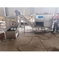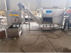 諸城佳品機械250大型凍肉絞肉機可將未解凍的肉塊或鮮肉直接進行絞切,制成規格不同的肉粒。大型絞肉機工作時利用轉動的切刀刃和孔板上孔眼刃形成的剪切作用將原料肉切碎,并在螺桿擠壓力的作用下,將原料不斷排出機外。可根據物料性質和加工要求的不同,配置相應的刀具和孔板,即可加工出不同尺寸的顆粒,以滿足下道工序的工藝要求。