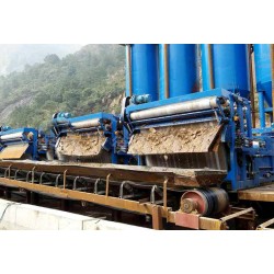 帶式壓濾機的作業方式就如同它的名字,是由上下兩條濾帶夾帶著污泥層,以S路線從排列有序的輥壓筒中經過,依靠濾帶本身的張力形成對污泥層的壓榨和剪切力,把污泥層中的毛細水擠壓出來過濾后的濾渣直接從帶式的濾布排出來,形成了持續不停的工作模式,過濾的效率相對較高。