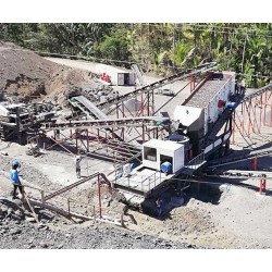 雙機聯合的移動制砂機就適合復雜一點的制砂生產線。物料尺寸可以擴大到300mm,需要用移動式反擊破碎機或者移動式圓錐破碎機將物料先處理到合適的尺寸再送入移動式制砂機中。