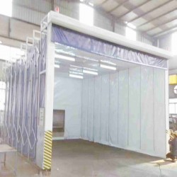 伸縮式噴漆房由伸縮式噴漆房和干式噴漆柜兩部分組成。其長寬高可以根據客戶要求設計和制作。伸縮式噴漆房通稱伸縮房。伸縮房的結構包括伸縮移動房體、伸縮軌道、照明系統、伸縮警示系統、電控系統組成。移動房體由驅動龍門架、從動伸縮架、伸縮連桿組成。