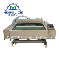 朝鮮冷面真空包裝機 榴蓮肉真空包裝機 下凹真空包裝機有些機型上真空室采用鋁合金鑄造后銑加工密封槽,真空室泄漏,真空室密封性能相應降低。另外,一般在不銹鋼上真空室四周平面上開設密封槽,其密封槽平整度較差,因受加工工藝影響,不銹鋼薄板常用厚度為2-4MM,下真空室采用厚不銹鋼板加工成平板式,取其所長,補其所短。厚度薄真空受壓后容易變形造成焊縫開裂,