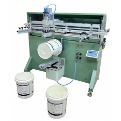 真石漆桶絲印機膠水桶絲網印刷機包裝桶滾印機印刷速度快,精度高,色彩鮮艷,墨層厚,立體感強,絲印效果顯著,節省人工,提升產能全自動曲面旋轉印刷機塑膠、玻璃、陶瓷、木材、金屬等材質制成之的圓筒、橢圓、扁型產品的曲面絲網印刷。印刷產品例如:唇膏外殼、化妝品瓶子、洗滌劑瓶子、飲料瓶、杯子,濾清器、罐子、玩具等。。。。。大型轉盤絲印機全自動機械手上下料絲網印刷機,廣泛適用于:電子電器,廣告,包裝印刷,運動器材,玩具,文具禮品等行業。產品例如PCB、LCD、EL、IC、SMT等。同時該機型也適宜其他精密印刷,貼紙、陶瓷花紙、薄膜開關(按鍵)、海報、汽車玻璃、儀表、建筑飾板、銘板、廣告牌標牌等。