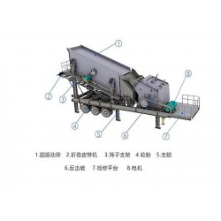 反擊式移動破碎站的結構*先要有折疊皮帶機、車架、支腿、反擊破、檢修平臺、電動機和控制箱等,在此基礎上,有些廠家生產的反擊式移動破碎站上還會配備振動給料機、振動篩、制砂機、除鐵器等。