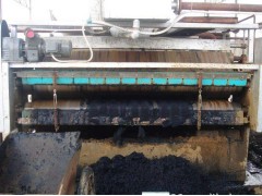 污泥經投加凝聚劑后進行充分混合反應流入濃縮段的進料分配器,將污泥均布到傾斜式的濃縮段上,并在泥耙的雙向導疏和重力作用下,污泥隨著濾布的移動,迅速脫去污泥的游離水。重力脫水后濃縮污泥反轉機構將污泥輸送至帶式壓濾機的重力脫水段進一步脫水。然后喂入“S”形壓榨段,在“S”形壓榨段中,污泥被夾在上、下兩層濾布中間,經若干個不同直徑輥筒反復壓榨,促使泥餅再一次脫水,然后通過刮刀將泥刮落,而上下網帶在運行過程中不斷的地被自動清洗。