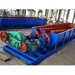 螺旋洗石機的清洗效率高,處理量大,適合處理75mm以下大小的礦石,沖洗水的壓力為147-196kPa。