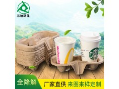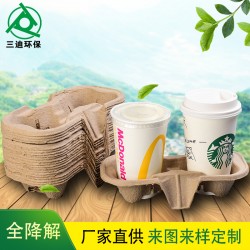 咖啡托環(huán)保可降解紙漿模塑一次性外賣豆?jié){可樂(lè)兩杯托廠家直供 |