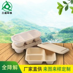 紙漿三格餐盒一次性環保可降解外賣便當盒餐盒帶蓋沙拉盒