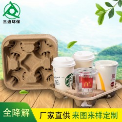 紙漿杯托4杯一次性杯托咖啡托盤可降解打包手提紙托現貨包裝環保