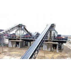 該系統(tǒng)的優(yōu)點是規(guī)格較多,可進行大型化生產(chǎn),適用范圍廣;產(chǎn)品品種比例易調(diào)節(jié),產(chǎn)品粒形好,粉料較少;對中等磨蝕指數(shù)的物料適應(yīng)性強。其缺點是對高磨蝕指數(shù)的物料適應(yīng)性差,粗粒徑骨料獲得率中等,磨損件消耗比圓錐破碎機高,單位產(chǎn)品能耗較高。