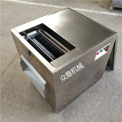 1.切條機切肉手工操作是先切成2-3cm的片狀,后切條,切條的時候要順著肌鍵的紋理方向切,這樣做出的牛肉干才可以撕成細條,切肉的時候注意別傷到手。如果產量很大,單純的手工切可能滿足不了生產的需要,我們可以選用切肉機,直接一次切成條狀,便于下烘干時的掛料。