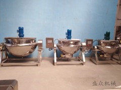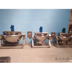 夾層鍋又名蒸汽鍋、蒸煮鍋、夾層蒸汽鍋.通常由鍋體和支腳組成。鍋體是由內外球形鍋體組成的雙層結構形式。夾層鍋具有受熱面積大、熱效率高、加熱均勻、液料沸騰時間短、加熱溫度容易控制、外型美觀、安裝容易、操作方便、安全可靠等特點。夾層鍋廣泛應用于各類食品的加工,也可用于大型餐廳或食堂熬湯、燒菜、燉肉、熬粥等,是食品加工提高質量、縮短時間、改善勞動條件的良好設備。夾層鍋以一定壓力的蒸汽為熱源(也可選用電機熱),夾層鍋具有受熱面積大、熱效率高、加熱均勻、液料沸騰時間短、加熱溫度容易控制等特點。夾層鍋鍋內層鍋體(內鍋)采用耐酸、耐熱不銹鋼制造,配有壓力表和安全閥,外型美觀、安裝容易、操作方便、安全可靠。