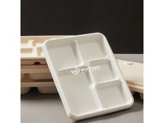 沃森 五格食堂餐盤環保包裝一次性餐盒可降解餐具,單個尺寸260*210*24.5mm,重量為22g,甘蔗白、原木色兩種規格可選。包裝方式為50個/包,500個/箱。適用于沙拉盒,餐飲行業外賣配送,學校食堂餐盤等。 全降解植物纖維材質,不會造成環境污染,易回收利用,可搭配蓋子使用,可微波冷藏,干凈衛生。
