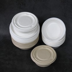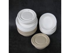 350ml帶蓋湯碗,一次性紙漿圓碗 甘蔗紙漿材質,尺寸為130*50mm,顏色為甘蔗白、原木色兩種顏色。包裝方式為50/包,600個/箱??纱钆浼埳w,食品*無異味,適用于粥類湯類打包。外形精致美觀,結實不易破漏。因其可被回收利用可堆肥、無污染、對環境無害、能被土地吸收等優點而被稱為可降解餐具。