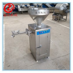 香腸灌腸機廣泛適應各種腸制品的灌制,尤其對較干的餡料和大肉塊的餡料相對其他灌腸機效果更佳,灌腸機上部設有貯料斗、蝶形閥,可實現不掀蓋灌制,提高了工作效率。