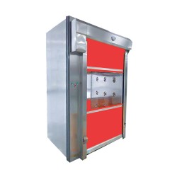 卷簾門風淋室的兩道門電子互鎖,可以兼起氣閘室的作用,阻止外界污染和未被凈化的空氣進入潔凈區域。工作人員將頭發,灰塵、帶入車間,工作場地嚴格的凈化標準,生產出高質量的產品。