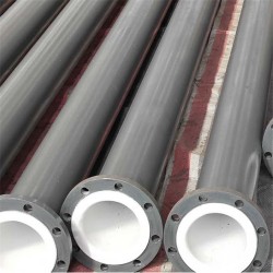 不銹鋼內襯PO管制作流程:焊接-打磨噴砂除銹-加熱鋼管-填料-熱滾塑-除銹刷漆-電火花檢測-出廠