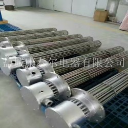 法蘭電熱管(也稱插入式電加熱器):是采用u型管狀電熱元件,多支u型電熱管焊接在法蘭上集中加熱,依據加熱不同介質設計規范,按照功率配置要求裝配在法蘭蓋上,插入需加熱物料中,***元件工作時所發出的大量熱量傳導給被加熱介質使介質溫度升高,達到所需的工藝要求,主要用于敞開式、封閉式的溶液箱和循環系統中加熱用。