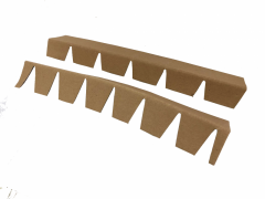 紙護(hù)角是多張牛皮紙復(fù)貼后,經(jīng)護(hù)角機(jī)定型壓制而成,主要有L形和U形。用于貨品堆碼后,可加強(qiáng)包裝物邊緣支撐力并保護(hù)其整體包裝強(qiáng)度,屬于綠色環(huán)保包裝材料