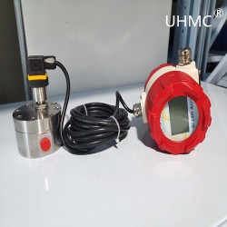 上海有恒UHGF型容積式圓齒輪流量計油表的工作原理其變送器的轉(zhuǎn)速是通過裝在表殼上的信號放大器里傳感線圈來檢測,信號放大器不與被測量介質(zhì)相接觸,當變送器齒輪切割由殼體內(nèi)長久磁石產(chǎn)生的磁力線時,就會引起傳感線圈中的磁通變化,傳感線圈將檢測到的磁通周期變化信號送入前置放大器,對信號進行放大、整形,產(chǎn)生與流速成正比的脈沖信號,送入單位換算與流量積算電路得到并顯示累積流量值,同時亦將脈沖信號送入頻率電流轉(zhuǎn)換電路,將脈沖信號轉(zhuǎn)換成模擬電流量,進而指示瞬時流量值。圓齒輪流量計變送器加工精度高,精密安裝,齒輪的旋轉(zhuǎn)被非接觸掃描,每一個齒產(chǎn)生一個脈沖,分辨率非常高,圓齒輪流量計可測量非常小的液體流量。
