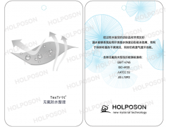 HOLPOSON® ECORING是不含有氟系的單防整理劑,該系列產品符合REACH法規、OEKO-TEX Standard 100 等標準。目前國際知名*牌NIKE、ADIDAS、UNIQLO等服裝公司共同參與制定危險化學品零排放(ZDHC)路線圖,主要目標全面要求停止使用 C8、C6、C4等含氟(PFCs)防水防油劑。HOLPOSON® ECORING 是新理念的功能性紡織品整理劑,單獨作為非氟防水劑使用,在棉纖維、合成纖維紡織品上具有優良的防水及耐水洗效果。防水耐水洗性更優異且對織物色光幾乎無影響,手感也會更柔軟。