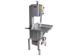 設計先進合理,平板立面,減少衛生死角,不易沾屑,全不銹鋼,瑞典進口鋸帶,自動張力調整,開門停機保護,防水插座,鋸帶保護罩可以上下調節,鎢鋼臺面擋塊,可選配滑動推板。特別適合屠宰場、肉產品加工場、分割線、超市等切割和加工