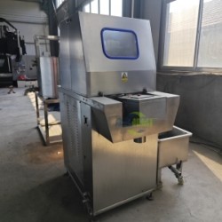 腌制是肉類加工工藝中的重要環節,腌制效果決定大部分中西式肉制品的品質。肉品的腌制方法主要有干腌、濕腌和混合腌三種。鹽水注射機是傳統浸泡濕腌的改進方法,傳統的研制方法速度慢、時間長、效率低、且原料肉較厚時區域無法達到理想的腌制效果。鹽水注射機通過特制針頭直接注入預先配置濃度的鹽水(腌制液),使其快速均勻地分布在肉塊中,可顯著提高腌制效率和出品率。(食品加工機械廠家Tel:150*0646-5106)